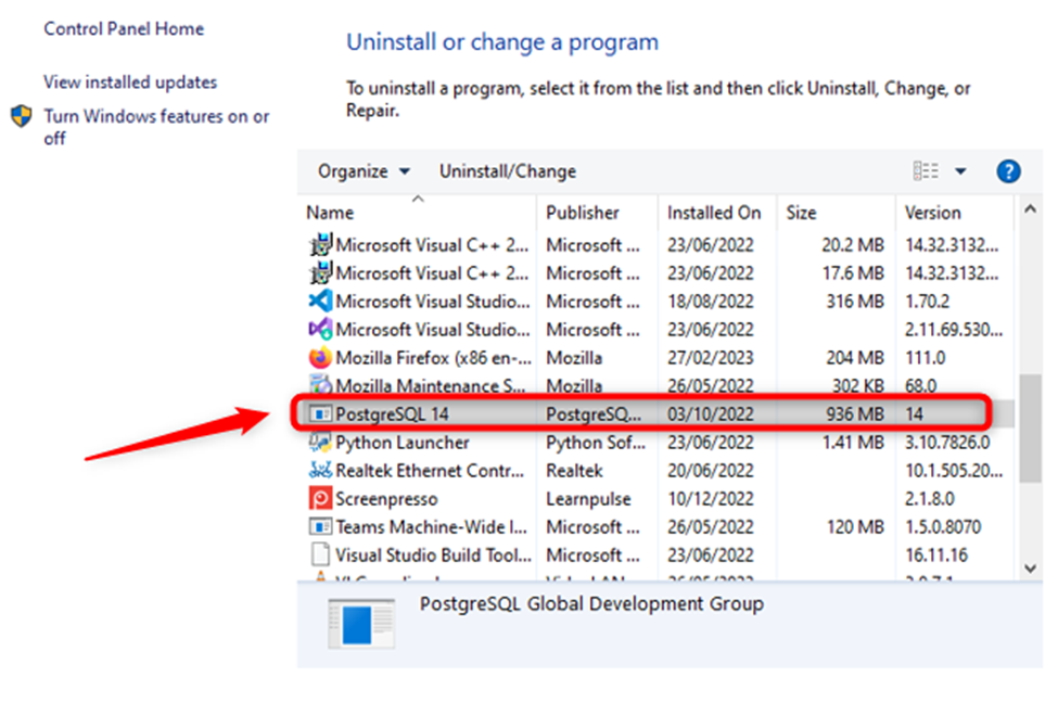 Uninstalling Postgres ensures that all of its files, configurations, and services are removed from the computer. To uninstall Postgres from windows, open the control panel > go to programs and features > locate PostgreSQL > Uninstall the PostgreSQL. This write-up demonstrated a step-by-step guide on uninstalling PostgreSQL from the Windows operating system.